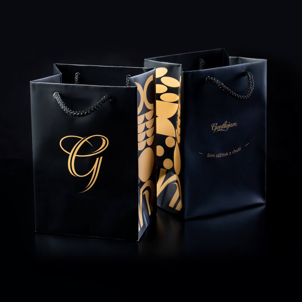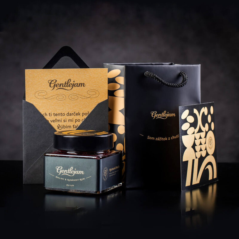 Na přední straně je text “Som zážitok z chutí” a na zadní straně je logo Gentlejam.