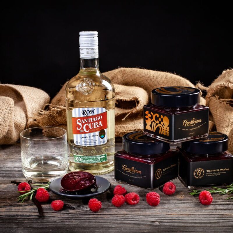 Složení výrobku: Maliny 68%, cukr, rozmarýn 0,1%, bourbon vanilka, kubánsky rum (alk. 38% obj.) 25%.