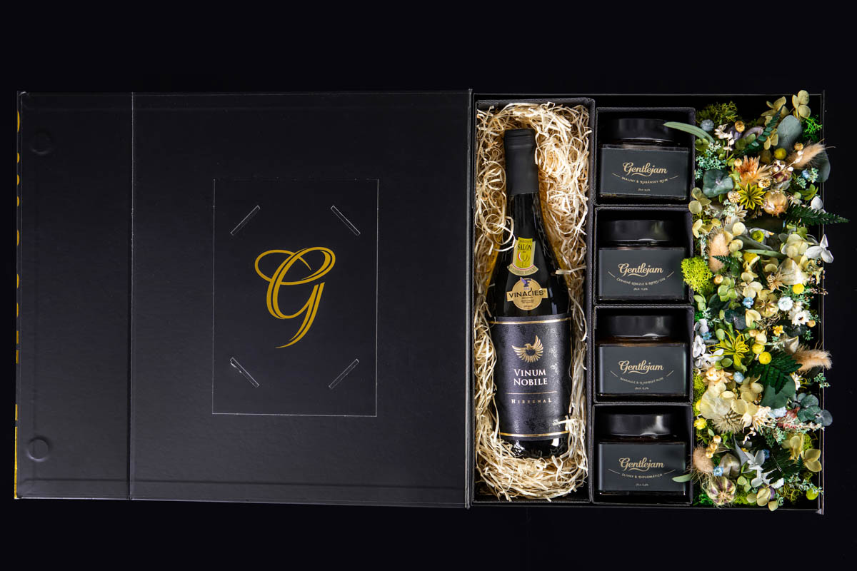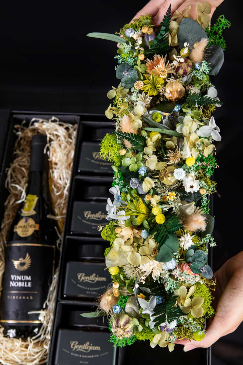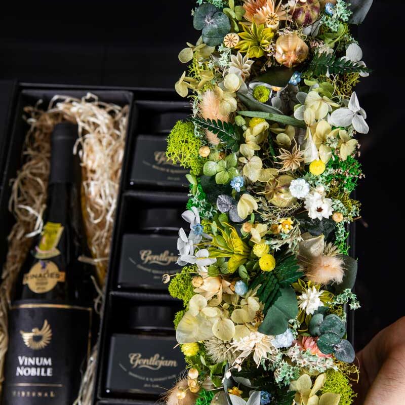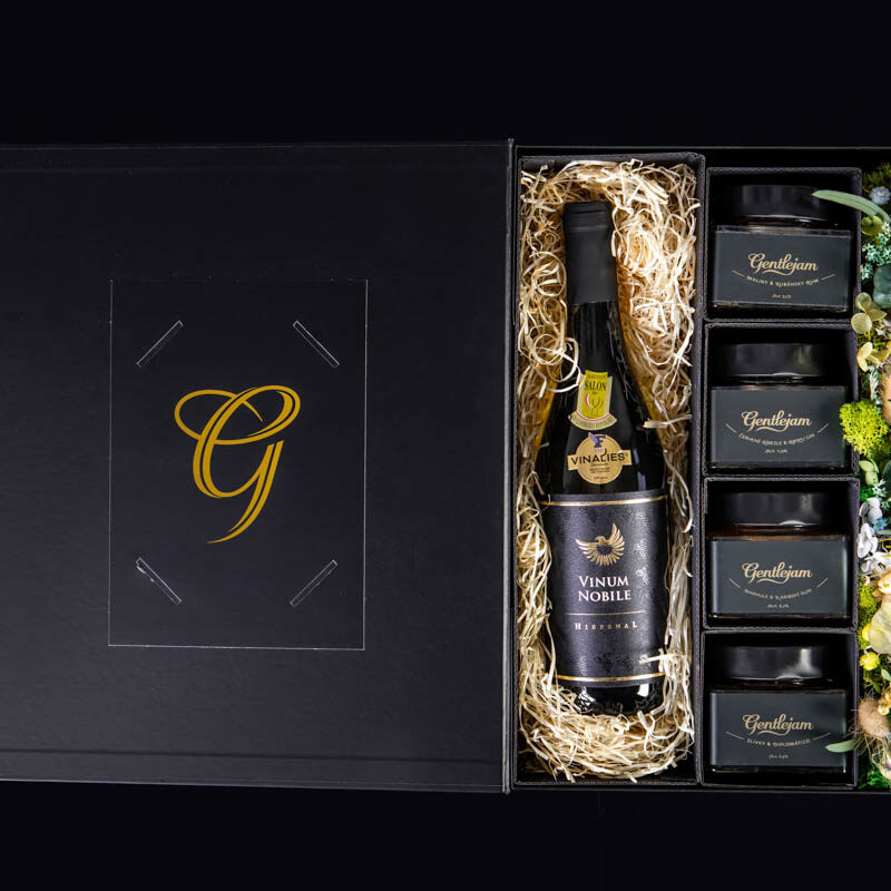 BOHO květinový box Gentlejam představuje dárek, který v sobě nese volnost, styl a gurmánskou vášeň v jednom. Je to kombinace našich prémiových alko džemů s originálním vínem a květinovou dekorací v BOHO stylu, která z něj činí jedinečný zážitek pro oči i chuťové pohárky. Tento box je víc než jen dárek. Je to vyjádření osobitého vkusu. Ovoce spojené s rumem či ginem odhaluje odvážné kombinace chutí, které se nádherně doplňují s jemně svěžím vínem. BOHO dekorace dodává celému balení lehkost a umělecký šmrnc, takže působí jako dárek s duší.
